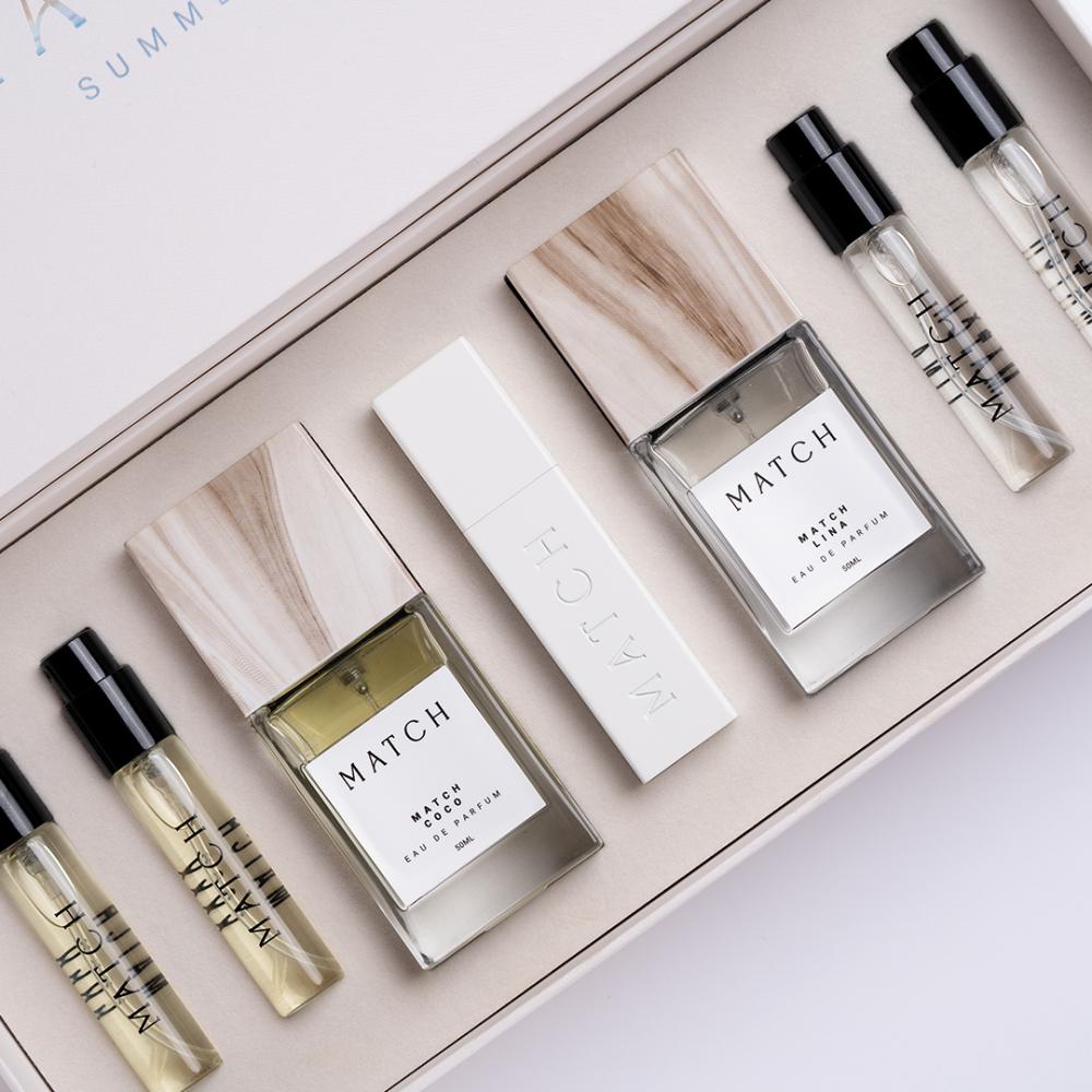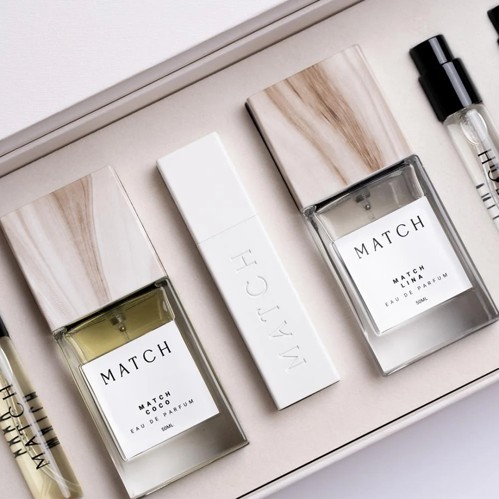 • Match Lina – A fresh floral composition of rose with a soft musk finish. A vibrant, modern scent that captivates with subtle charm.